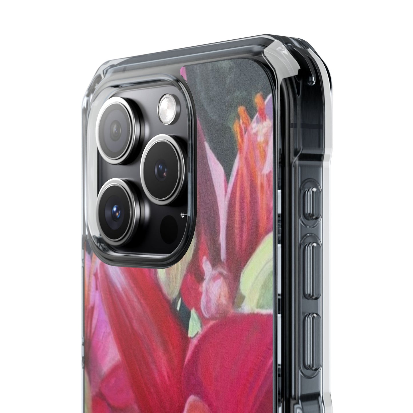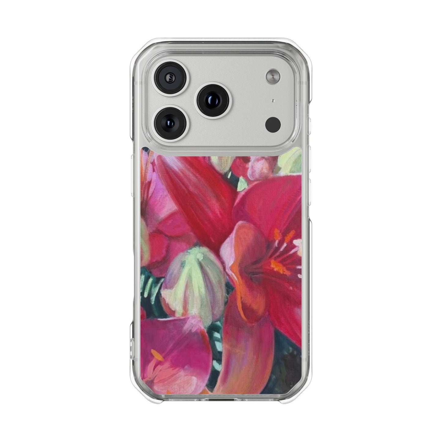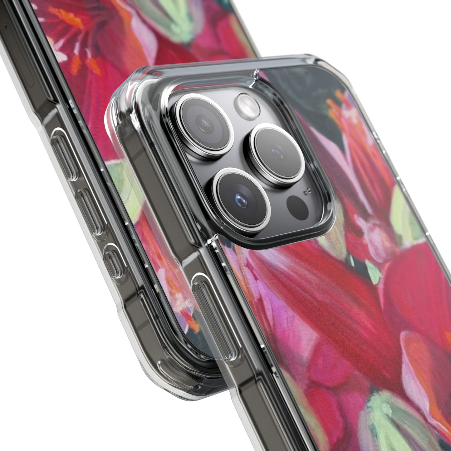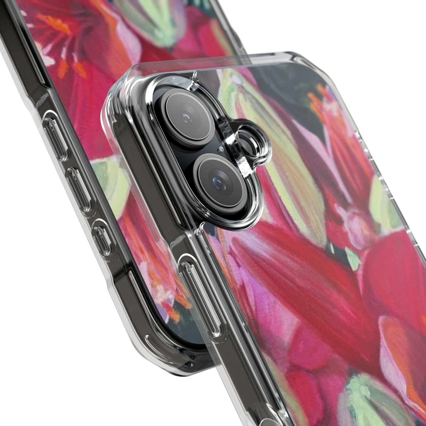 Transparent protection that feels like an extension of your phone. This clear impact case keeps the color and shape of your device visible while adding a layer of confident, everyday defense. The floral artwork peeks through glass-like polycarbonate, giving your phone a painterly, lively presence without hiding its original finish. Soft TPU edges cushion drops, and air-filled corners absorb shocks so you can slip the phone into a bag or hand and trust it to survive the bustle. Built-in magnets support MagSafe® accessories, and a discreet strap hole lets you add a wrist loop or charm for hands-free carrying. This case fits into a life that values thoughtful design and practical resilience — for those who love art, movement, and keeping their essentials close.