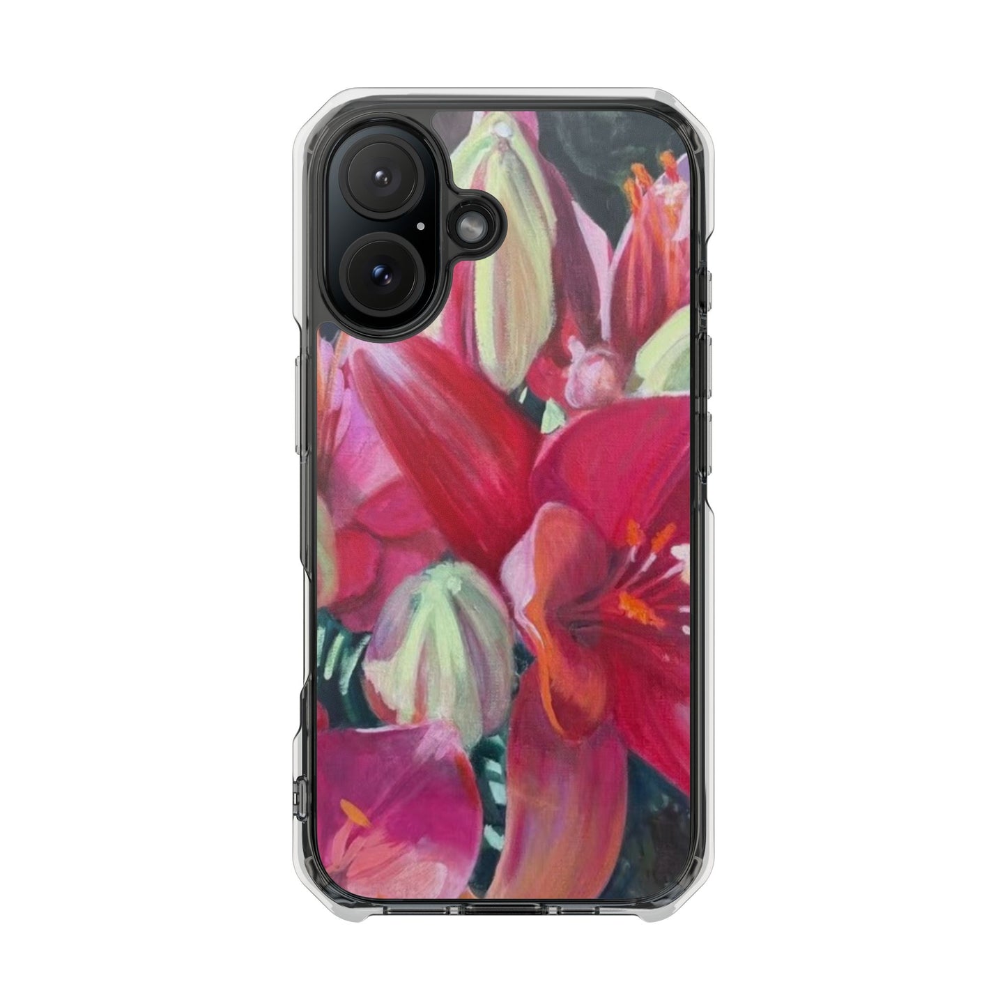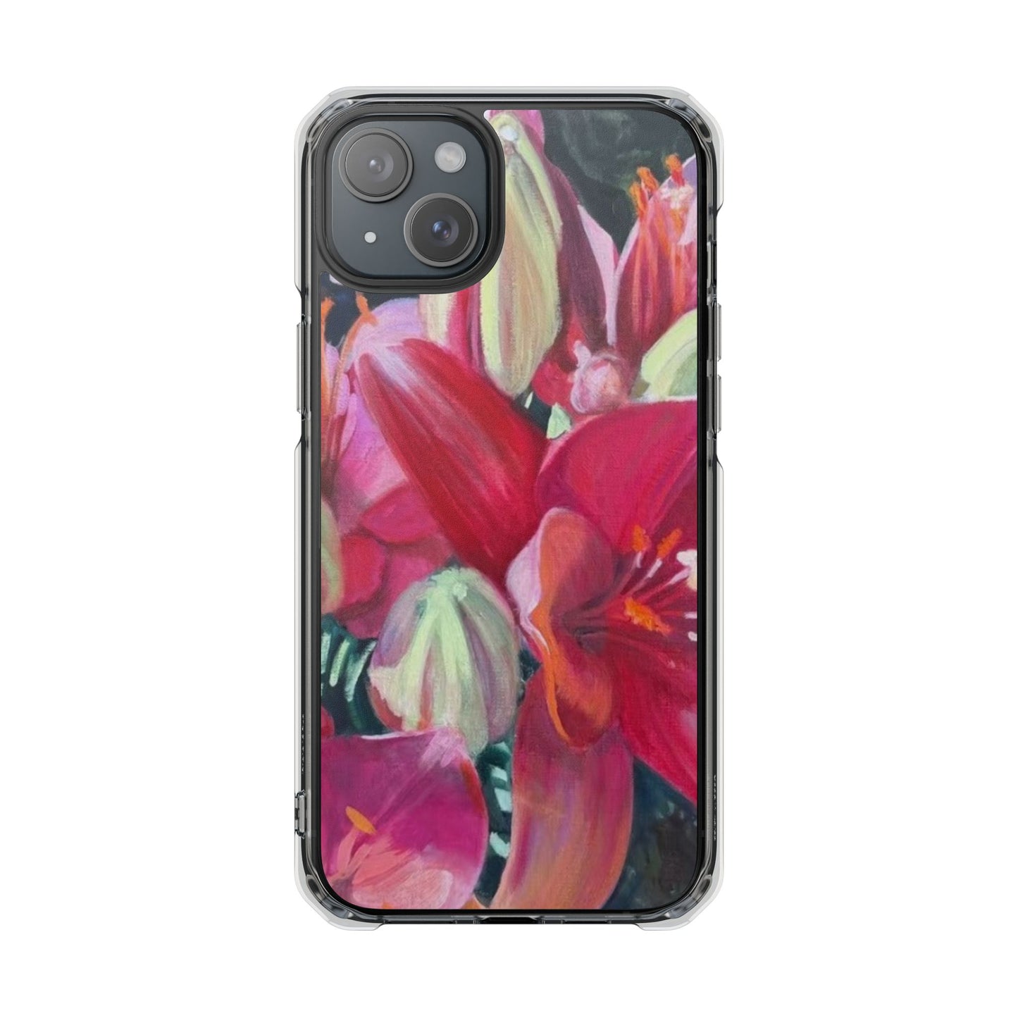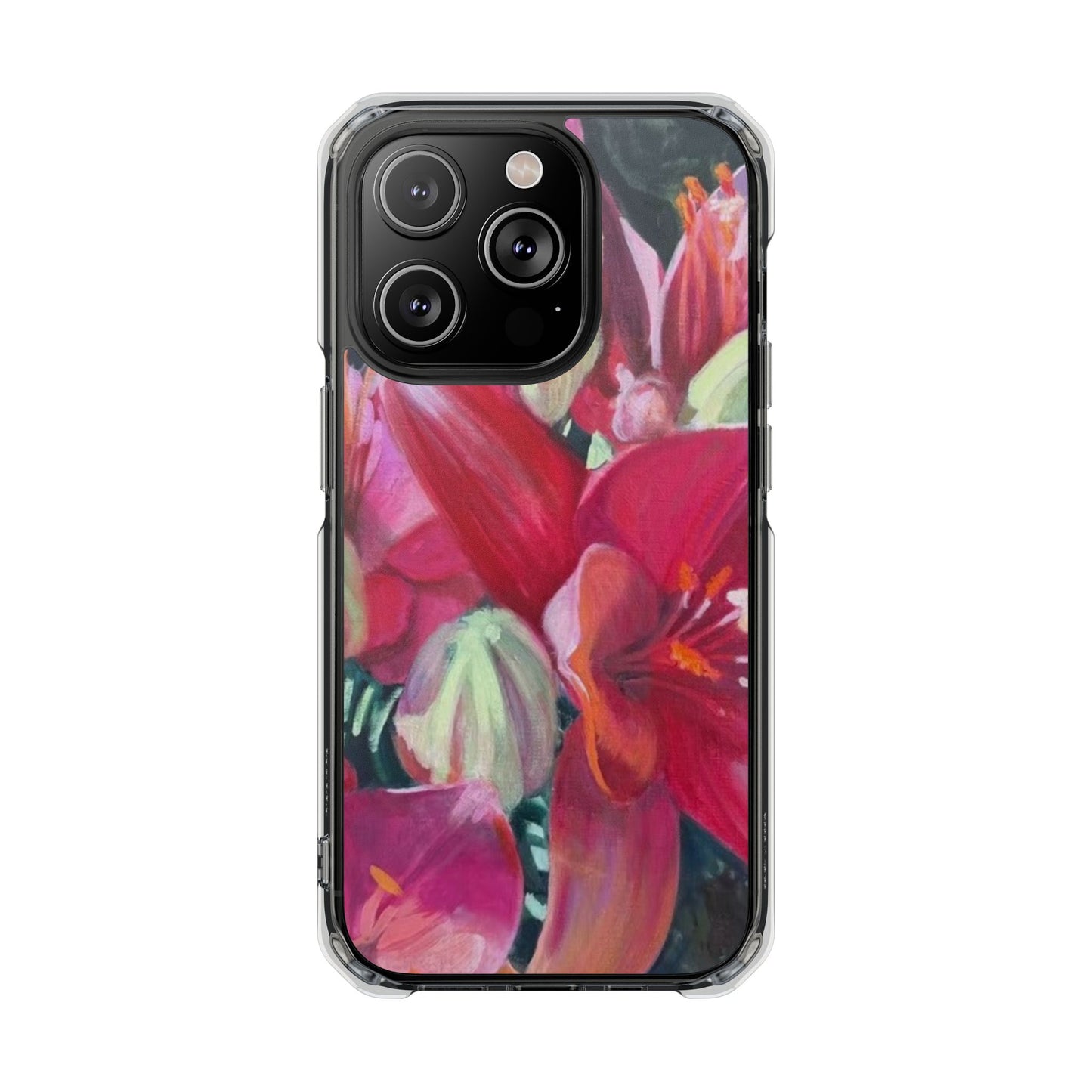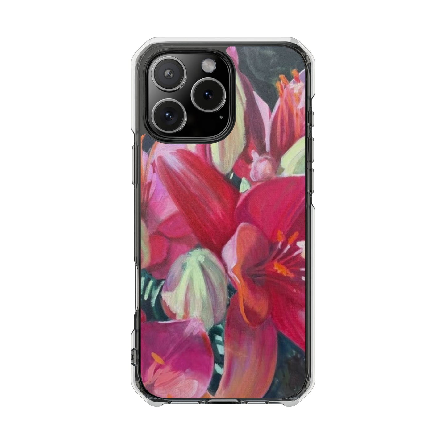 Transparent protection that feels like an extension of your phone. This clear impact case keeps the color and shape of your device visible while adding a layer of confident, everyday defense. The floral artwork peeks through glass-like polycarbonate, giving your phone a painterly, lively presence without hiding its original finish. Soft TPU edges cushion drops, and air-filled corners absorb shocks so you can slip the phone into a bag or hand and trust it to survive the bustle. Built-in magnets support MagSafe® accessories, and a discreet strap hole lets you add a wrist loop or charm for hands-free carrying. This case fits into a life that values thoughtful design and practical resilience — for those who love art, movement, and keeping their essentials close.
