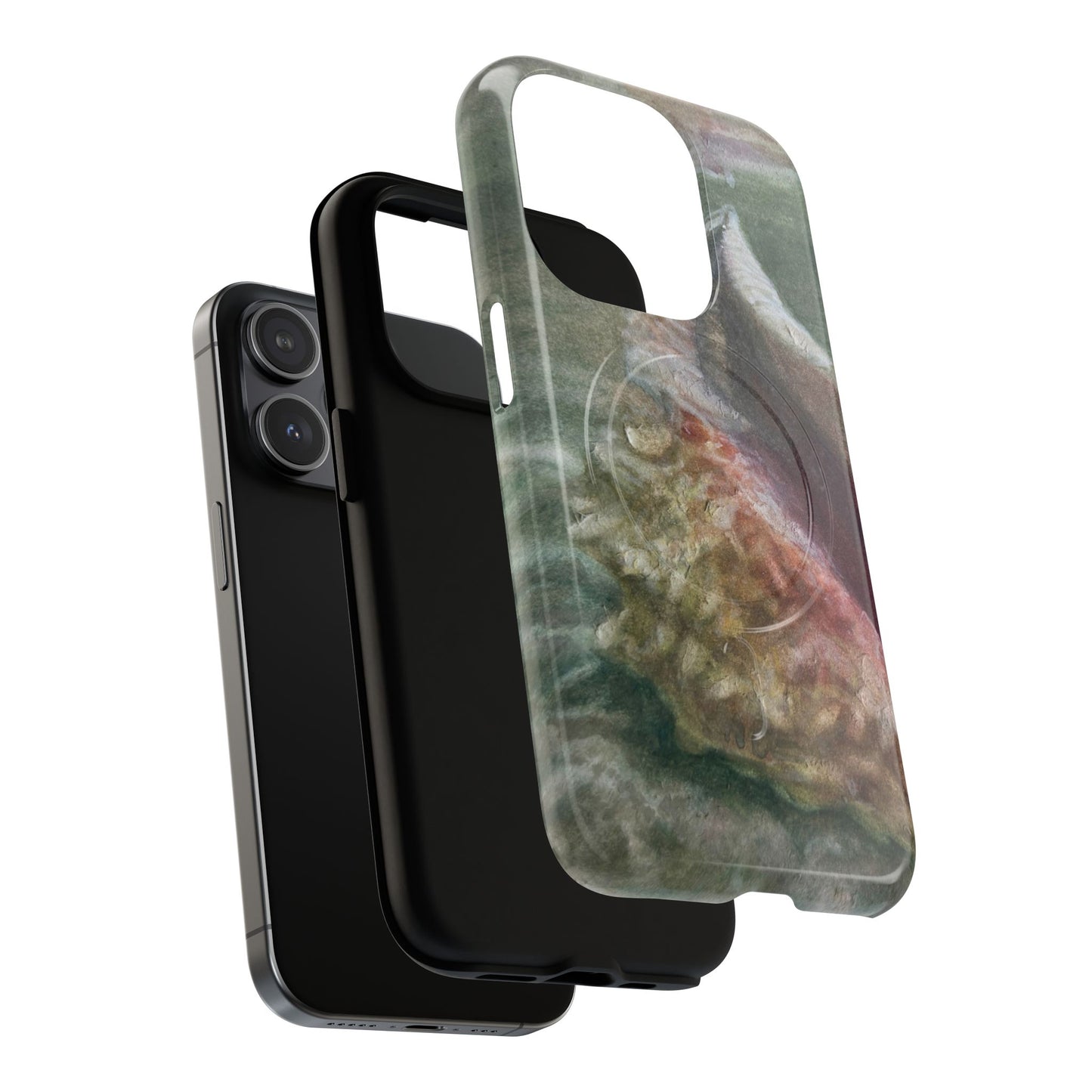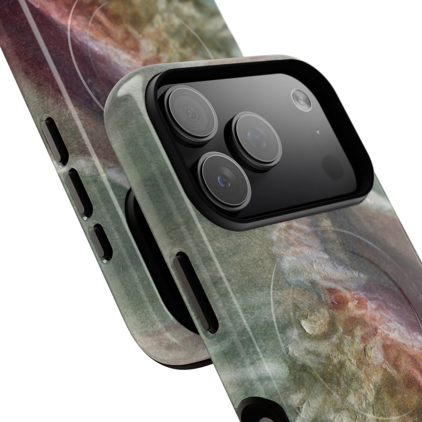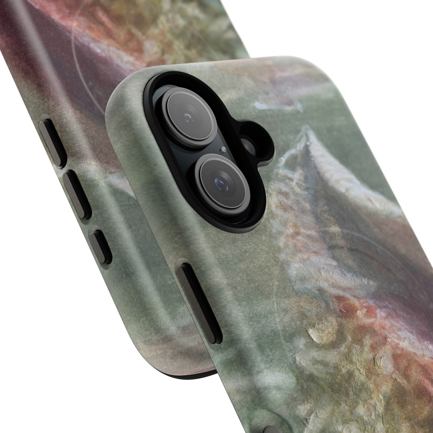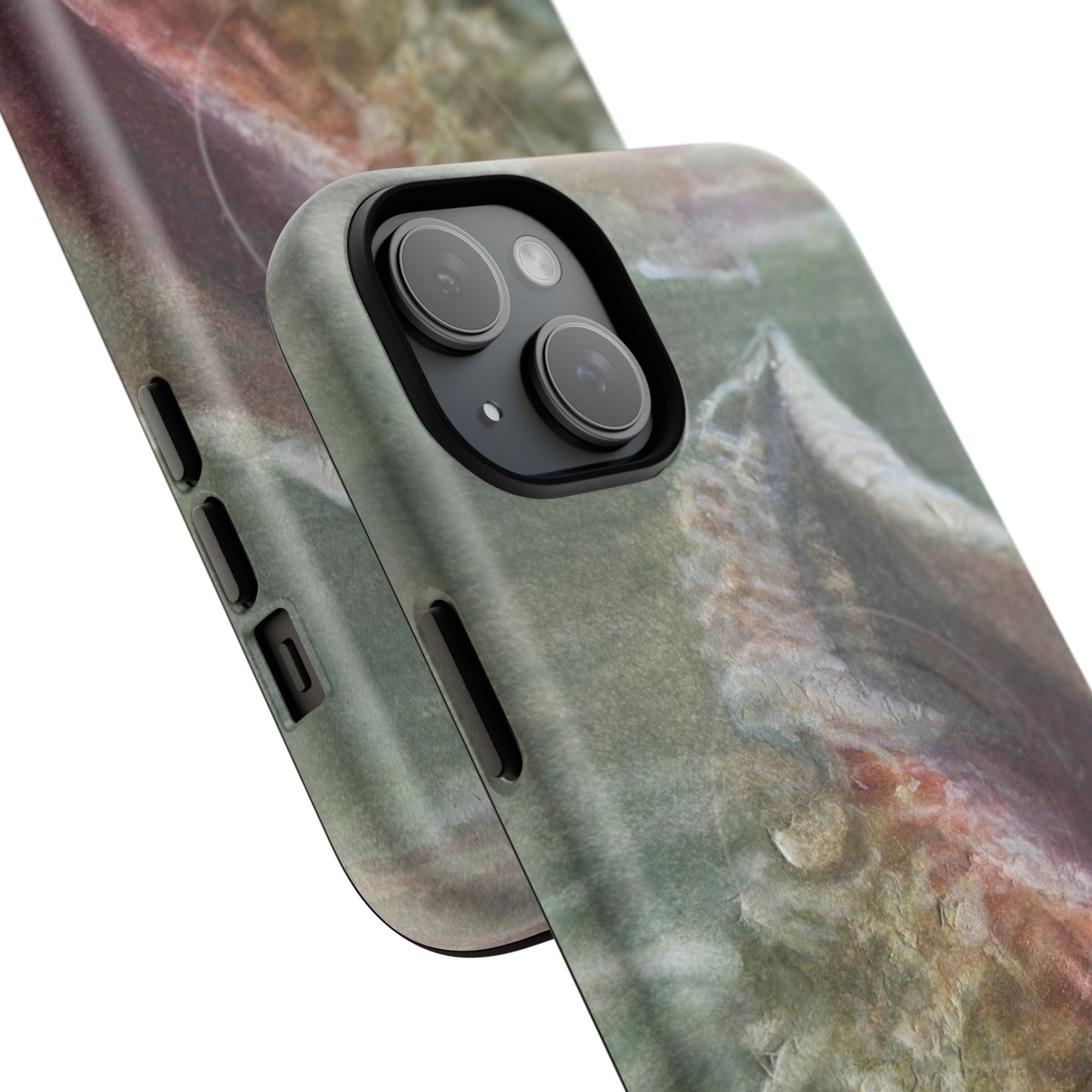A rugged, artful phone case that blends protection with a moody, ocean-inspired print. The dual-layer construction (polycarbonate shell with a TPU silicone liner) soaks up shocks while the 3D wrap keeps the design rich and tactile. MagSafe-compatible magnets snap on with confidence, and ports remain fully accessible for charging and headphones. Choose glossy for deeper color pop or matte for a softer, more muted finish. This case feels like a carried talisman—weathered coastline tones, pearlescent highlights, and brushlike textures that age beautifully with everyday life.